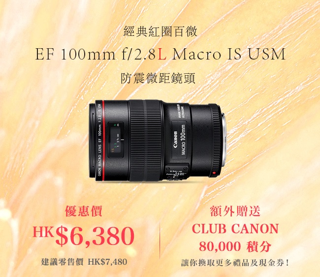 貴為L系列成員,EF 100mm f/2.8L Macro IS USM的影像質素當然無與倫比。其採用全新研發12組15片鏡片設計,當中1片UD超低色散鏡片能有效消除近攝時常見的色散問題,確保能拍攝出高對比度、解像度及色彩豐富的優質影像。其9片圓型光圈葉更能營做柔和優美的散景效果,令鏡頭也適合人像拍攝之用。鏡頭的內對焦系統配合環型超聲波馬達及優化的自動對焦演算法,能提供更快速及寧靜的自動對焦操作。EF 100mm f/2.8L Macro IS USM更具備防塵防水滴功能。