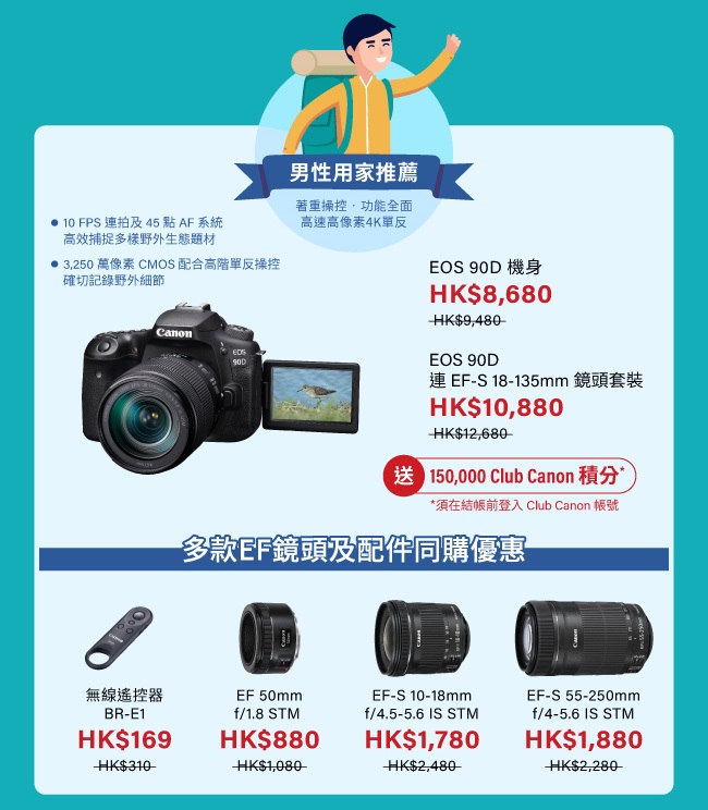 - EOS 90D 連 EF-S 18-135mm f/3.5-5.6 IS USM 鏡頭套裝: HK$12,680