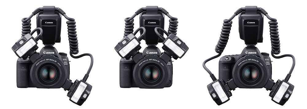 微距雙邊閃光燈MT-26EX-RT兼容多款EF微距鏡頭1,支援E-TTL II2 2/ E-TTL 自動閃光及手動閃光,備有可獨立控制的左、右閃燈頭的輸出比例,而每邊的閃燈頭都可以在閃燈環上以每5°為增量作80°的迴轉,而閃燈頭本身亦可以垂直45°向上、45°向下或水平60°往內、30°往外指向不同方向,並可作離機閃燈使用,用家可隨意控制閃光方向,在佈置燈光方面十分靈活。閃光燈的最高閃光燈指數(GN) 在左、右兩邊同時閃光時提升至26 (米; ISO 100),單邊閃光時為19.9 (米; ISO 100),讓用家可於高放大倍率近攝時發掘獨一無二的創意場景配置。閃光燈的另一改進是手動閃光輸出設定範圍可於1/1至1/512中以1/3級為增量(上一代為1/1至 1/64),更精細的輸出設定,讓用家於微距拍攝時能夠輕鬆獲得更精確及與環境光更平衡的曝光效果。