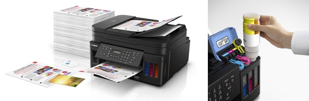 採用全新高用量佳能原廠加墨式墨水系統,每套黑色及彩色(靛藍/黃/洋紅)墨水分別可打印多達6,000頁及7,700頁,大幅降低彩色文件打印成本至每張HK$0.04*,省下長期運作成本。全新的防濺出墨水設計,只需扭開墨水樽蓋並插入墨水槽即會自動注入墨水,過程快捷簡單。全新的墨水系統能帶來更結實清晰的黑色文字效果,亦能豐富還原鮮明色彩,不論文件及相片打印同樣細緻出色。