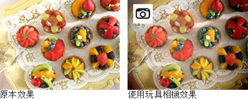 | 玩具相機效果: 將影像營造如針孔相機的效果,更設「暖色調」、「標準」、「冷色調」三種色調選擇。 |