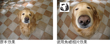 | 魚眼效果: 相機會放大影像的中央部分,產生有趣的變形效果,更設「高」、「中」、「低」三級程度選擇。 |